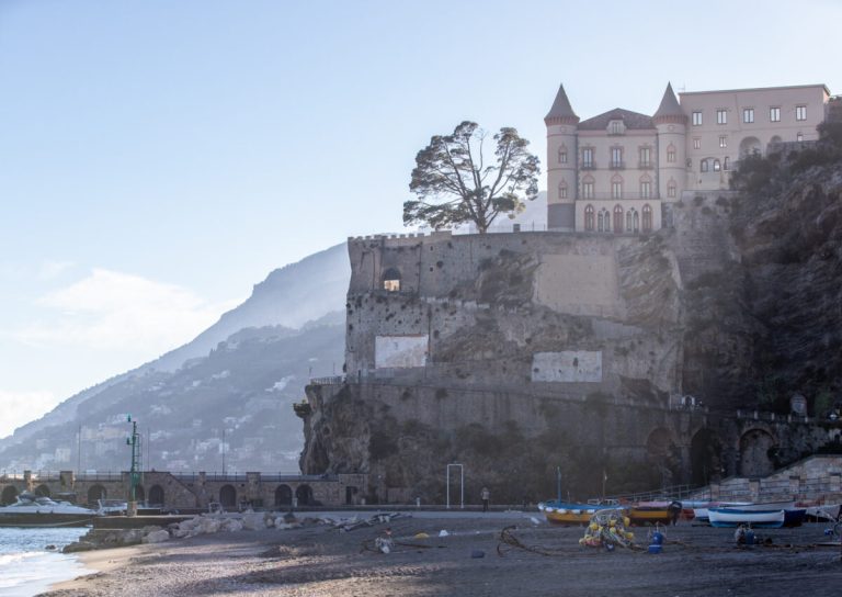 - We rented our car in Salerno and took our time exploring from there to Amalfi the first day. The drive up the hills out of Salerno offers you your first glimpse of what the coast is like as well as provides you with a great overlook of the city. From there, the road winds and twists it way past a few small villages before coming around one last outside corner and revealing Maiori. This small stretch of beach is a perfect place to stop for lunch and to calm your nerves from the drive. There is a boardwalk that is filled with eateries and shops. After lunch and gelato, it is time to press on but not before checking out the castle on the cliff at the far end of town.